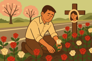 “아내에게 바치는 마지막 선물”… 교통사고 현장에 장미 1000그루 심은 남편 [여기는 동