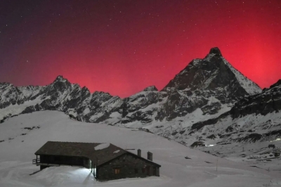 최근 태양의 왕성한 활동으로 지구촌 일부 지역에 화려한 오로라가 발생한 가운데, 알프스산맥 봉우리인 마터호른이 붉은빛으로 물들었다. 로이터 통신 등 외신은 지난 12일(현지시간) 마터호른 상공에 …