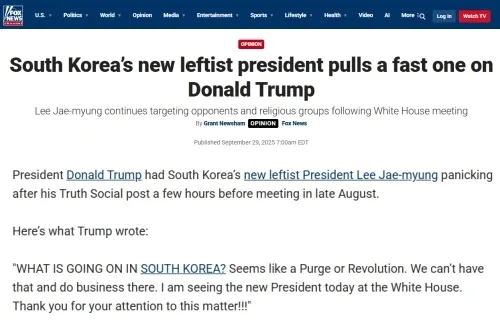 미국의 아시아 안보 전문가이자 부정선거론자인 그랜트 뉴섬이 “이재명 대통령이 지난달 백악관에서 도널드 트럼프 대통령을 상대로 속임수를 썼다”고 주장하는 기고문을 공개했다.