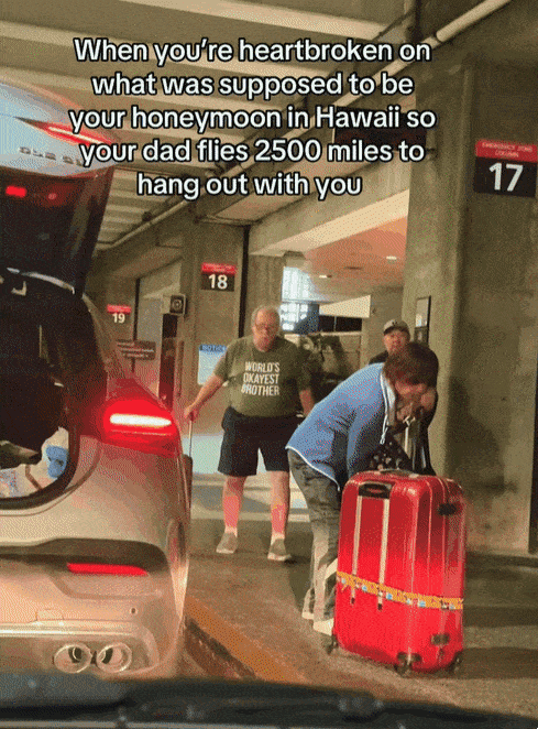 이 사연은 그녀가 틱톡에 자신의 이야기를 공개하면서 급속도로 확산했다. 틱톡에는 “하와이에서 혼자 신혼여행을 보내야 하는 가슴 아픈 딸을 위해 아빠가 2500마일을 날아왔다”고 적었고 해당 내용은 조회수 600만 회 이상과 응원 댓글 수천 개를 기록했다.