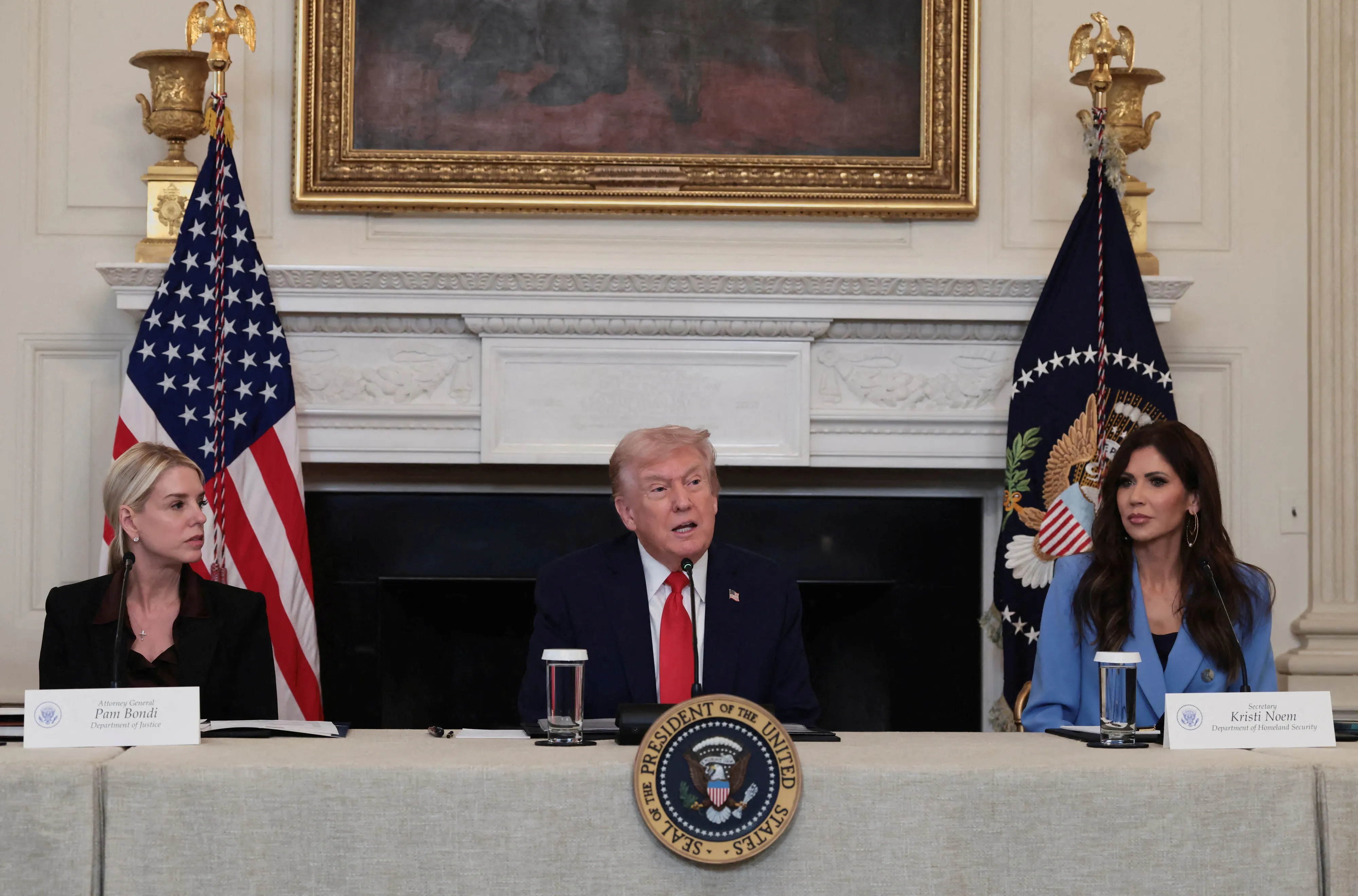 트럼프 대통령은 회의 전반에서 안티파와 좌파 세력에 대한 강경 대응 방침을 재확인했다. 그는 “좌익 테러 위협이 매우 심각하다”고 주장하며 안티파를 “선동자이자 무정부주의자이며 돈을 받고 활동하는 세력”이라고 비난했다. 또 “그들은 사람들에게 매우 위협적이었지만 우리는 그들이 우리에게 한 것보다 훨씬 더 위협적으로 대응하겠다”고 경고했다.