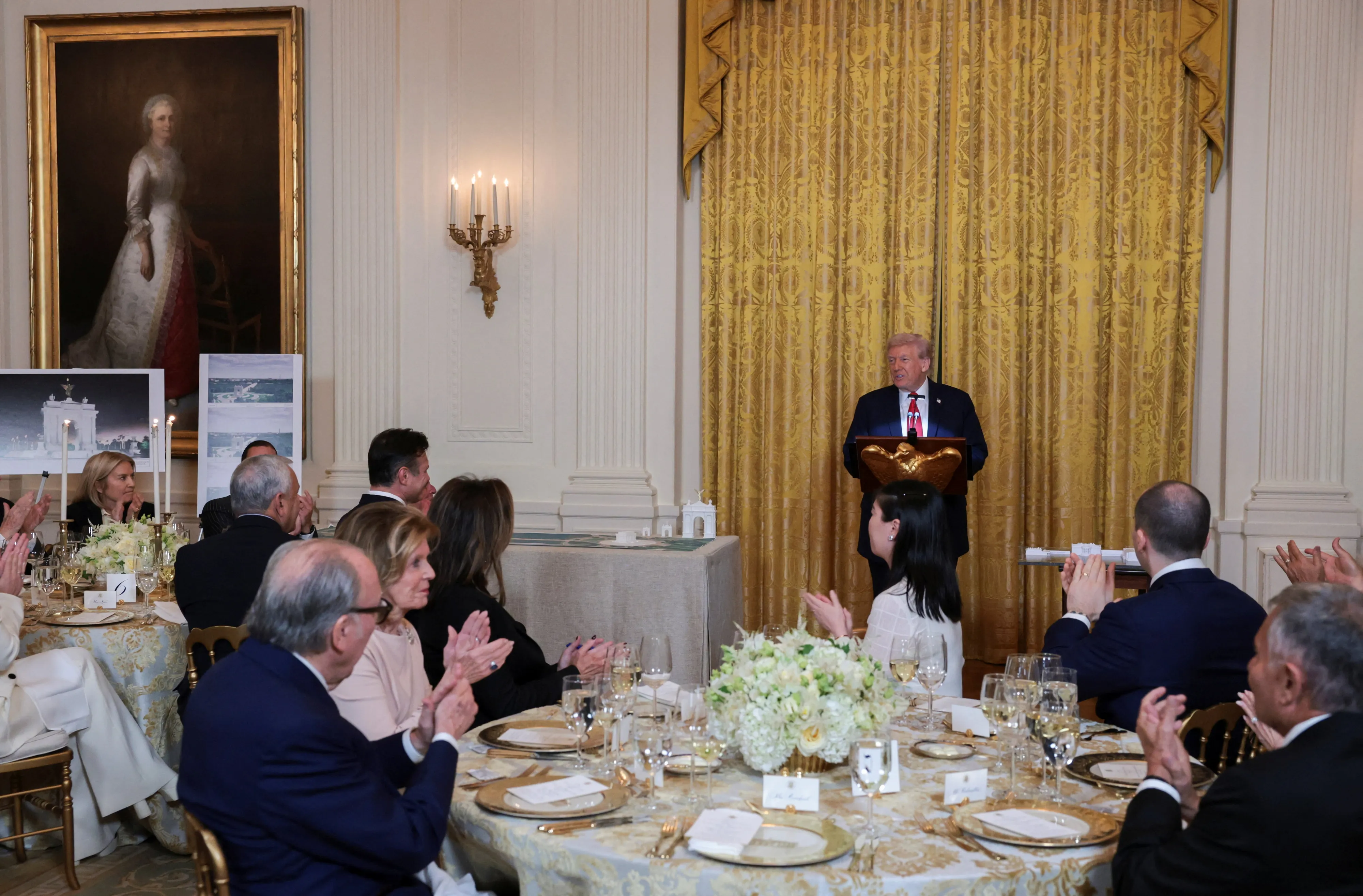 트럼프 대통령은 같은 날 만찬 자리에서 워싱턴 개선문 모형을 공개하며 “미국의 승리를 기념할 상징이 될 것”이라고 밝혔다.
