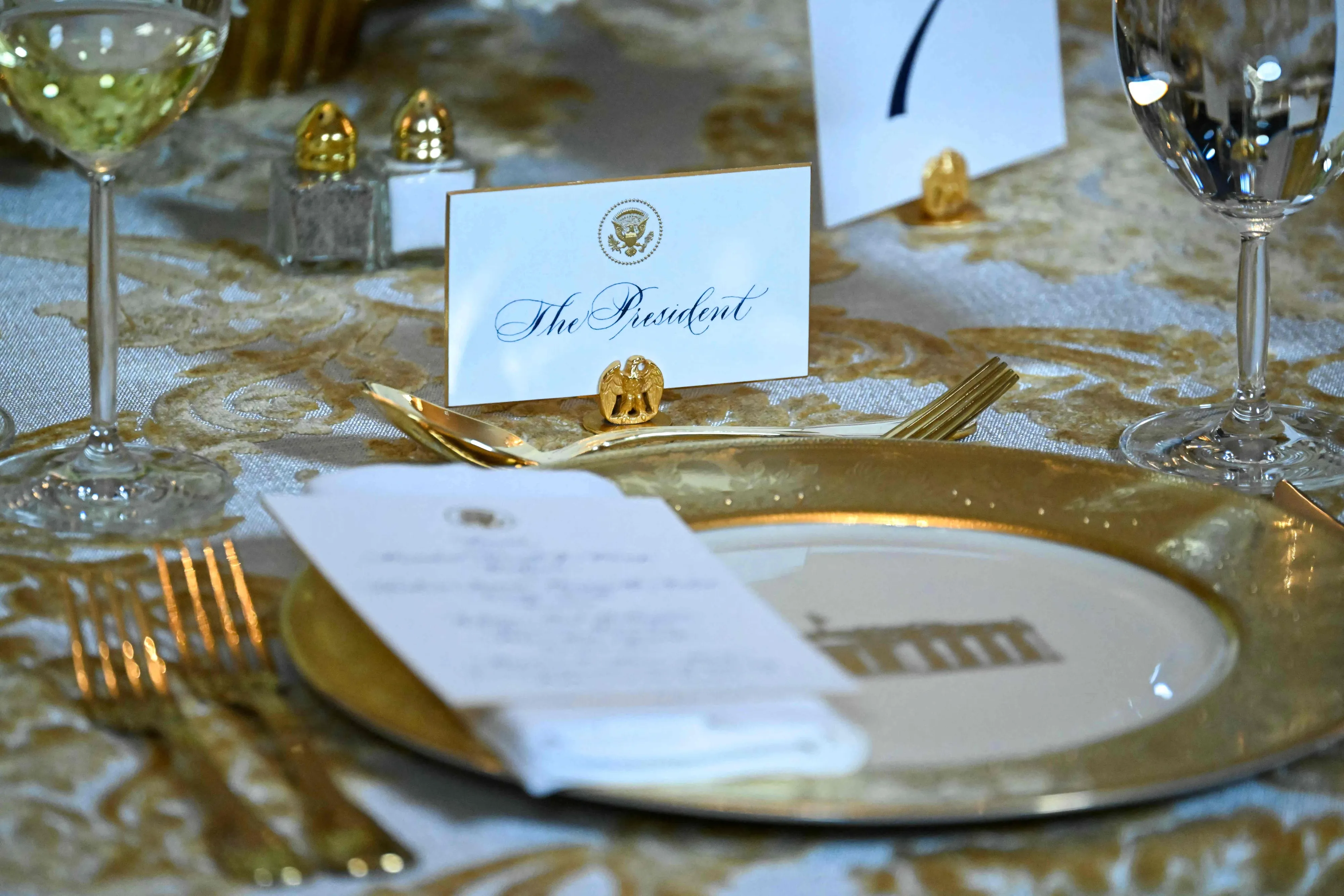 행사장에는 금테 장식 접시와 흰 장미 장식, 샴페인과 와인이 제공됐으며 메뉴는 토마토 판차넬라 샐러드, 비프웰링턴, 배·시나몬 크럼블 디저트였다.