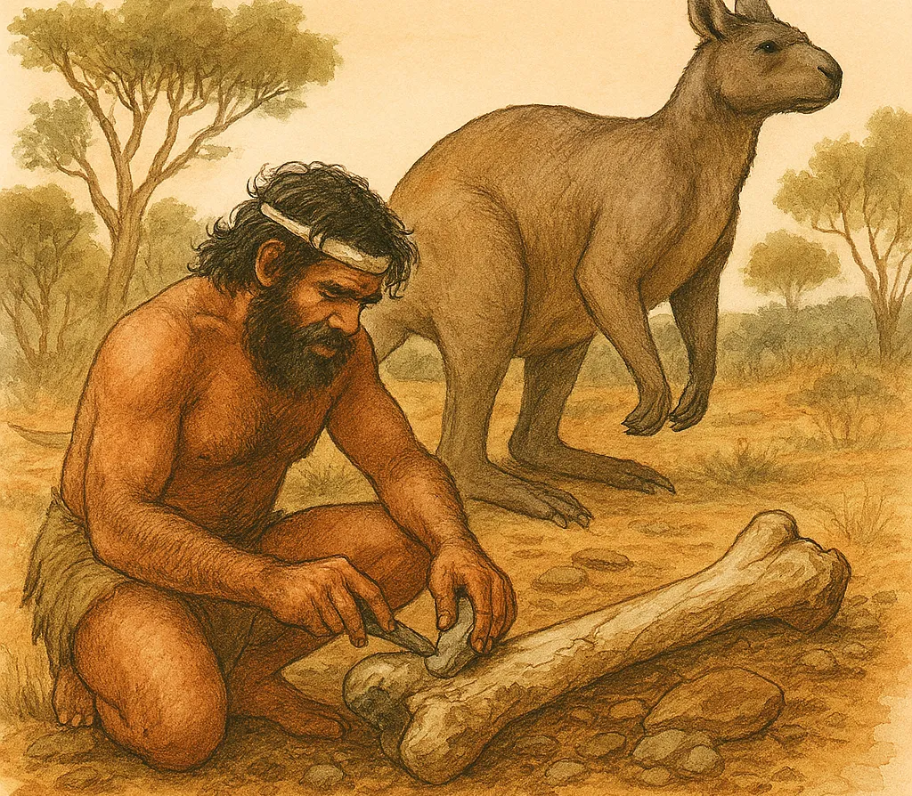 당시 이 스테누린 캥거루 대퇴골 화석에는 인간이 도축할 때 생긴 것으로 추정되는 날카로운 절개 흔적과 단단한 돌로 내려칠 때 생긴 듯한 균열이 있었다. 이 흔적은 초기 호주 정착민이 고대 캥거루를 사냥했다는 최초이자 유일한 직접적 증거로 여겨져 왔다. 몸집이 커서 인간에게 쉽게 사냥당해 멸종했다는 가설을 뒷받침하는 핵심 근거였다.