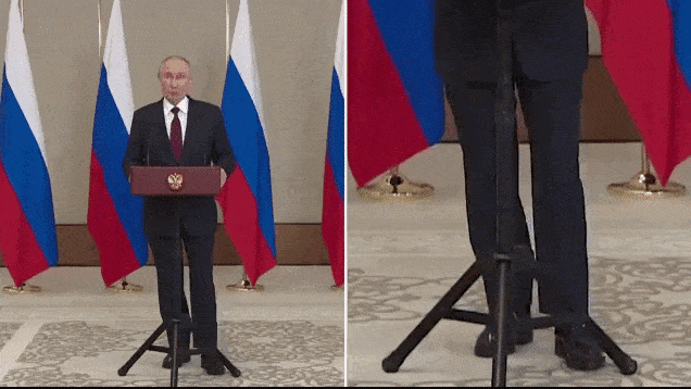 데일리메일은 푸틴 대통령이 지난해 11월 카자흐스탄 아스타나 방문 중 다리가 풀린 듯 흔들리며 단상을 붙잡는 모습을 포착했다고 전했다.