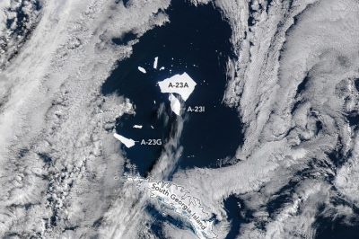 고향인 남극대륙에서 떨어져 나온 ‘세계에서 가장 큰 빙산’의 근황이 전해졌다. 25일(현지시간) 미 항공우주국(NASA) 지구관측소는 여러 조각으로 분리되며 최후를 맞고 있는 빙산 A-23A의 모…