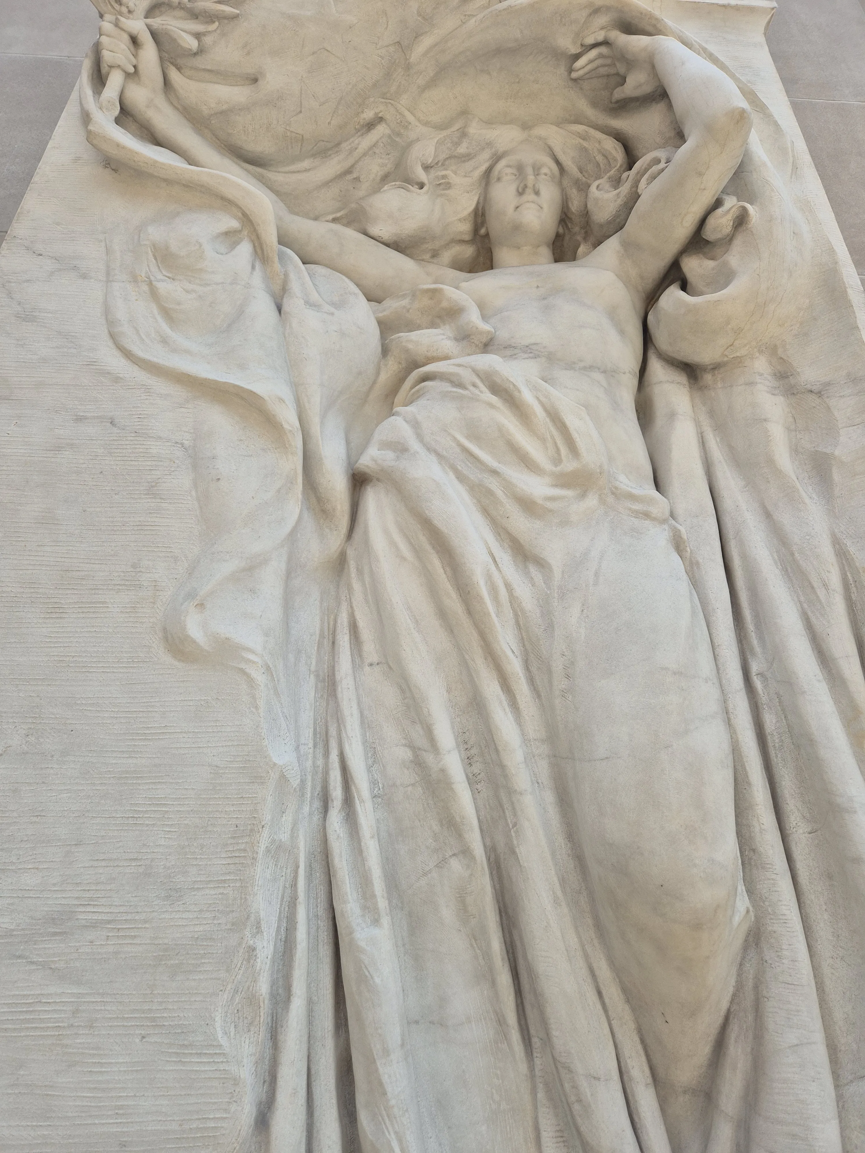 ‘애도하는 승리’는 원래 콩코드의 슬리피 할로우 묘지에 세워진 멜빈 기념비의 일부로, 메트가 소장한 작품은 그 복제품(레플리카)이다. 그러나 이 복제품은 단순한 복제가 아니라 프렌치가 처음 구상했던 예술적 이상을 더 충실히 구현했다는 점에서 의미가 깊다.