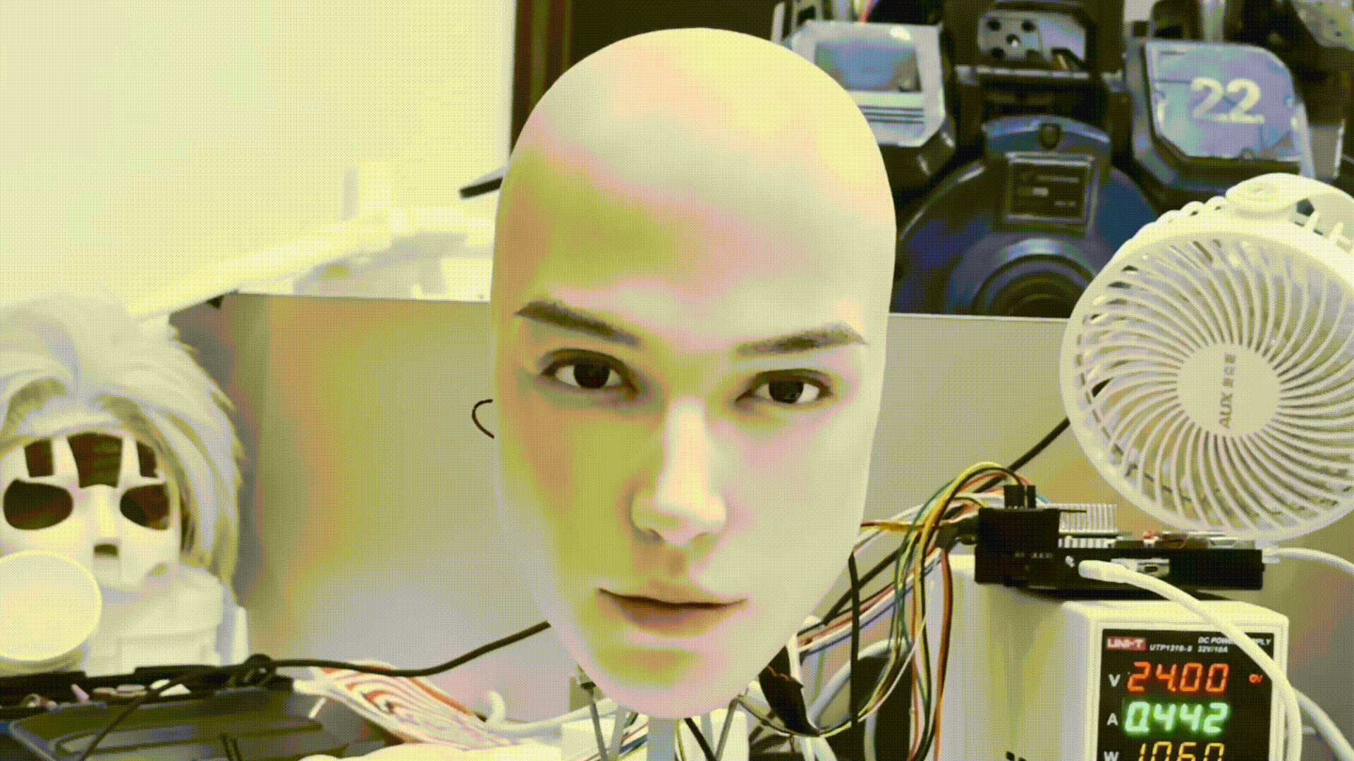 지난달 18일 공개된 유튜브 영상에서 이 로봇은 작은 작업대 위에 놓여 눈을 깜빡이고 입을 벌리는 등 실제 인간과 매우 유사한 움직임을 선보였다.