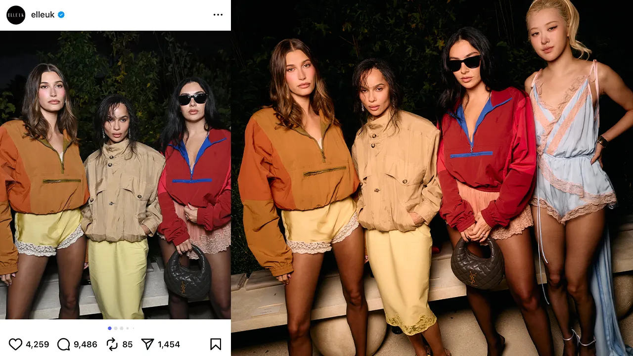 그중 로제가 흰 드레스를 입고 미소를 지으며, 마돈나와 유명 셀럽 등과 같은 줄에 앉아있는 사진이 포착됐다. 특히 논란의 중심이 된 헤일리 비버, 조이 크라비츠, 찰리 XCX 세계적인 스타들을 옆에 두고 중앙에 앉은 듯한 구도가 눈에 띈다.