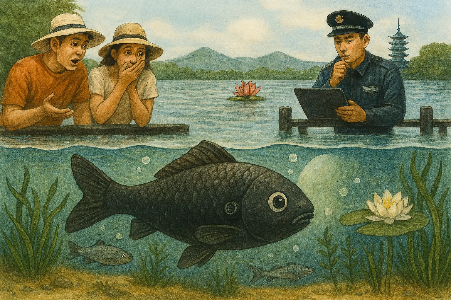 중국 저장성 항저우시의 대표 관광지인 서호(西湖)에 정체불명의 검은 물고기들이 출몰해 눈길을 끈다. 일부 관광객들은 “상어 아니야?”라며 놀라기도 했지만, 사실 이 물체는 경찰이 배치한 ‘물고기 로봇’이었다.