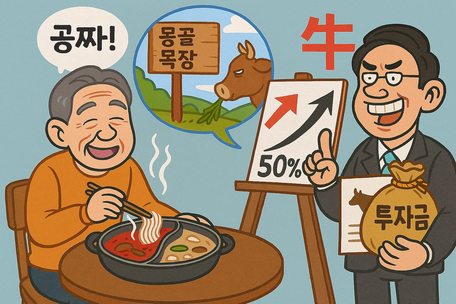이어 회사가 “10만 위안(2000만원)을 투자하면 내몽골 목장을 무료 탐방 여행을 시켜 주겠다”는 이벤트를 열자 주 씨는 5만 위안을 추가 투자했다. 몽골 초원에서 소떼를 보고, 심지어 ‘본인이 입양한 소’에게 직접 풀을 먹이는 ‘인증’까지 마친 주 씨는 의심의 여지가 없었다. 하지만 그 뒤로 석달이 지난 뒤 그가 받은 것은 이자가 아닌 ‘훠궈 식당 폐쇄’와 ‘회사 도산’이라는 충격적인 소식이었다.