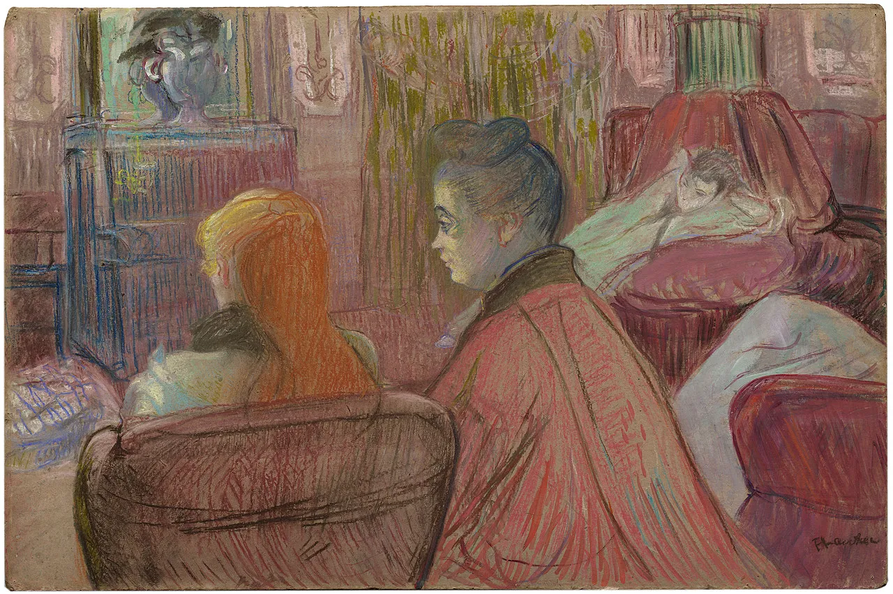 파리 몽마르트르 유흥가를 주 무대로 활동했던 화가 앙리 드 툴루즈-로트렉(Henri de Toulouse-Lautrec). 그의 작품인 <살롱에서>는 쾌락과 향락의 공간으로 알려진 살롱의 화려함 너머에 존재하는 인간의 무기력과 권태를 날카롭게 포착한 작품이다. 뉴욕 구겐하임 미술관이 소장한 대표작 중 하나인 이 그림은 파리 유흥가를 배경으로 하지만, 로트렉이 포착한 것은 쾌락의 현장이 아니라 그 속에 흐르는 무기력과 권태다. 살롱은 은밀한 향락의 공간이 아니라, 사회적 계층과 질서가 미묘하게 얽힌 무대였다.