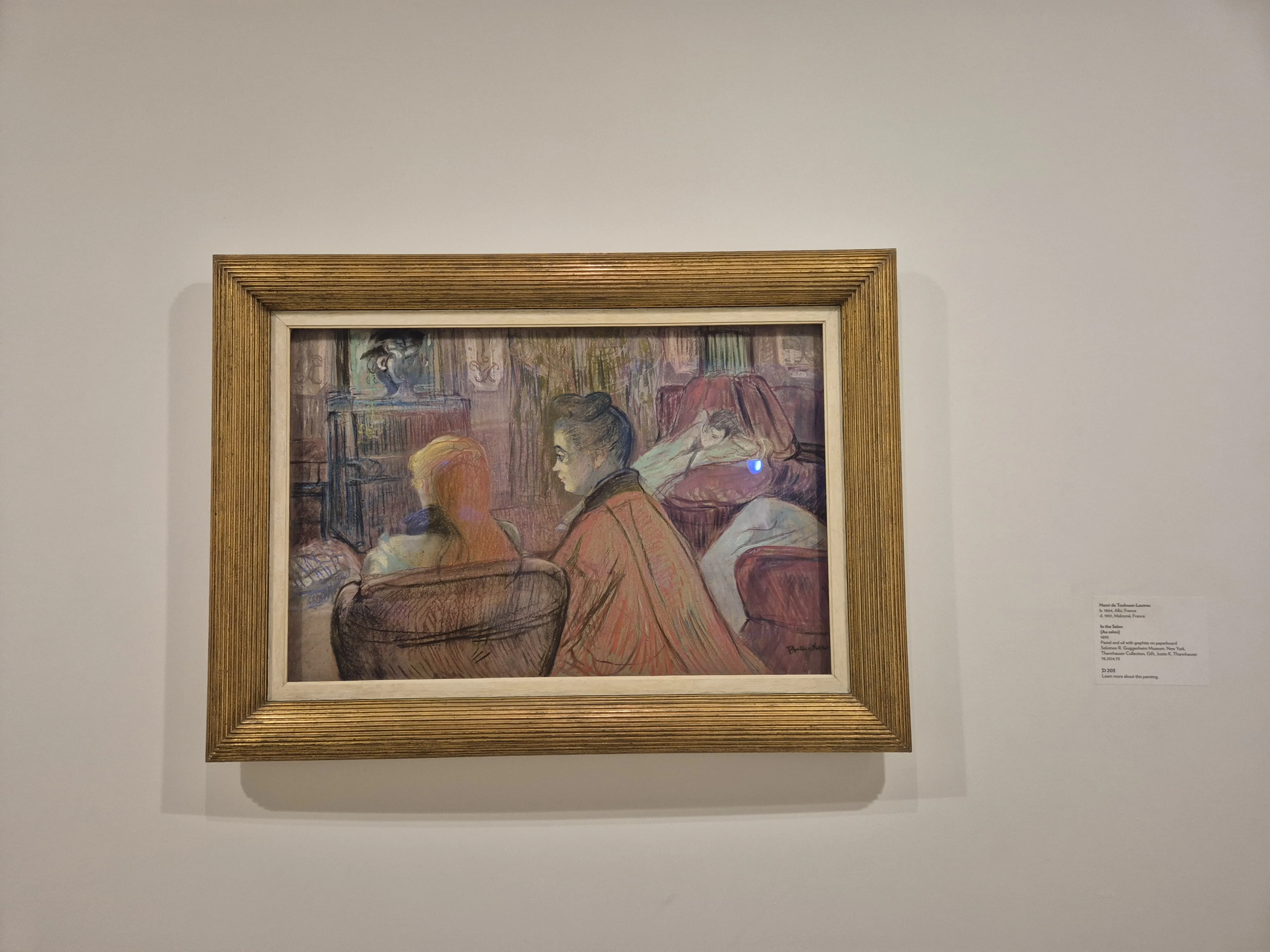 로트렉은 그들을 관음자(Voyeur)가 아닌 내부자(Insider)이자 기록자로서 바라보았다. 그들과 스며들어 어울렸기에, 유흥의 화려함 뒤편에서 사람들이 느끼는 외로움과 존엄을 누구보다 진실하게 그려낼 수 있었다. <살롱에서>가 구겐하임 컬렉션에 자리 잡은 이유는, 그것이 단순한 풍속화가 아니라 사회적 관찰과 인간 존재에 대한 깊은 이해와 성찰이 담겨 있기 때문이다.