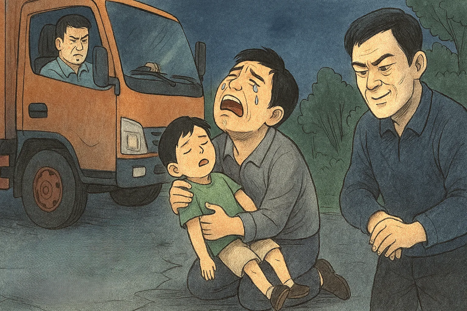사건은 수년 전 밤 7세 남아 샤오장(小张)이 길가에서 소변을 보다가 화물차에 치여 사망하면서 시작됐다. 당시 아이의 아버지 장이(张乙)는 현장에서 오열했고, 사고를 낸 화물차 운전자 장자(张甲)는 교통사고죄로 집행유예를 선고받았다. 화물차 차주는 보험금 98만 위안(약 1억 8000만원)을 포함한 100만여 위안을 피해자 측에 배상하기로 합의했다.