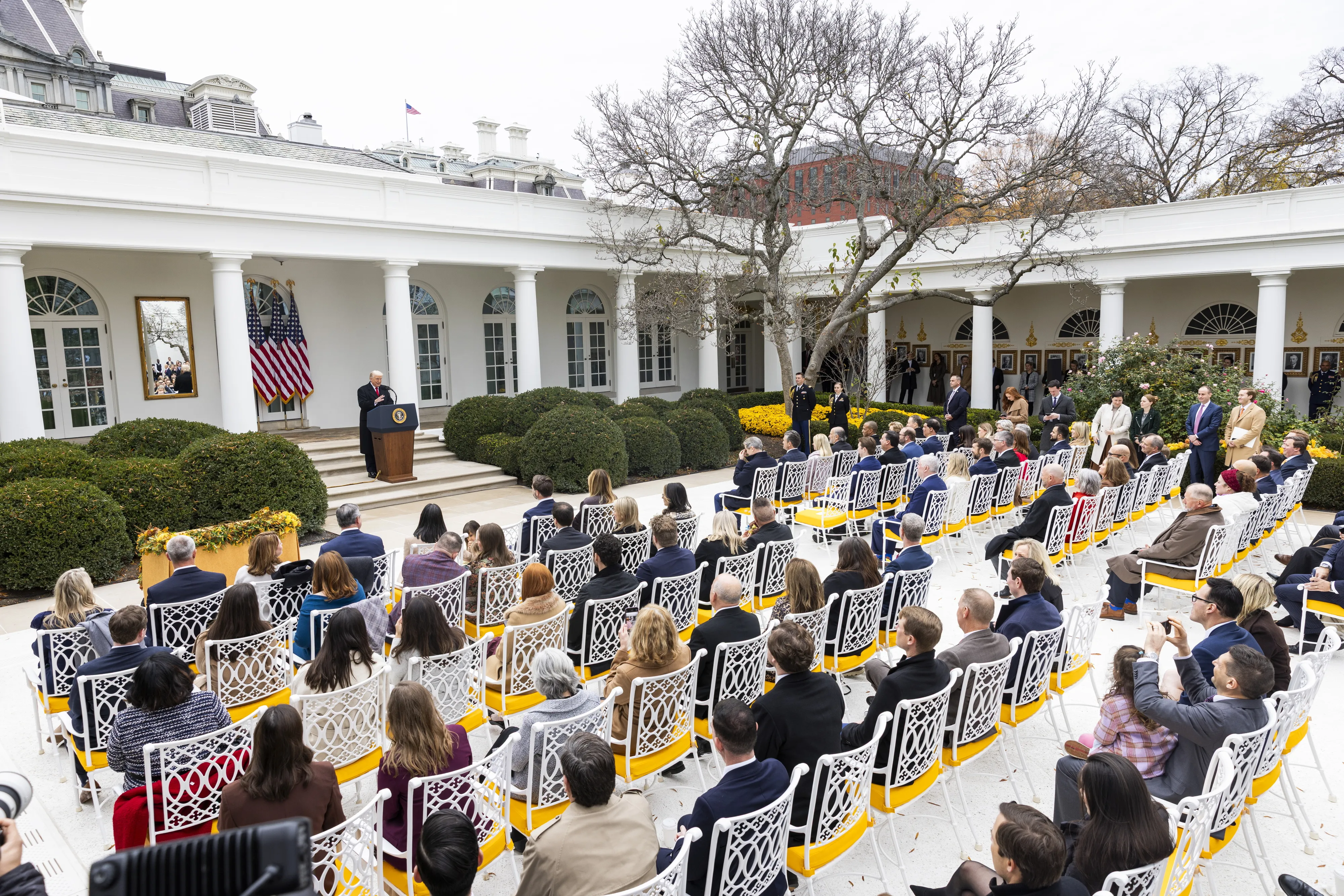 로즈가든은 플로리다 개인 별장 ‘마러라고’의 파티장처럼 포장했고 ‘대통령 명예의 거리’를 설치해 금빛 액자와 사인 간판으로 꾸몄다.