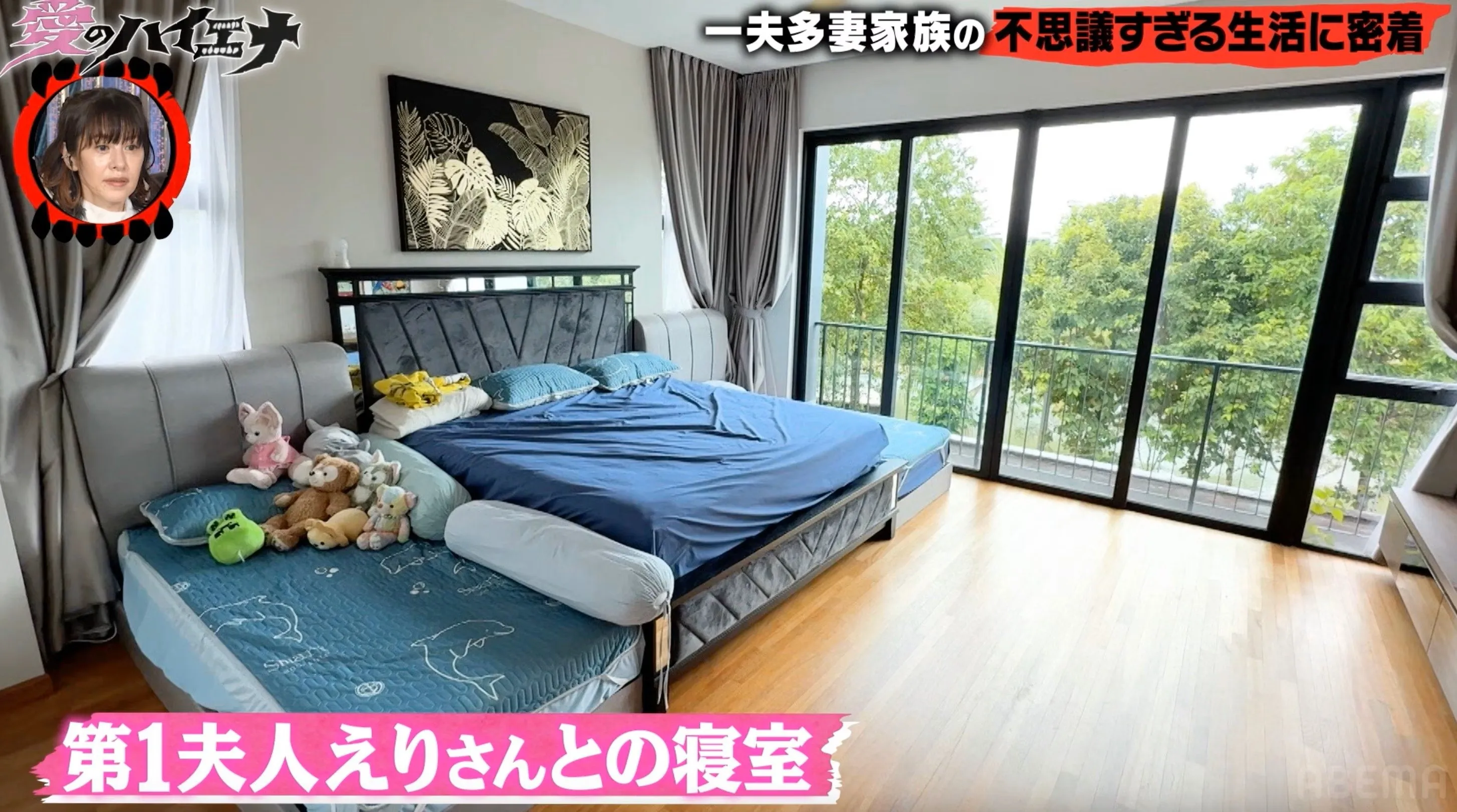 ▲ 일본 아메바(ABEMA) 오리지널 프로그램 ‘사랑의 하이에나 시즌5’에서 공개된 다카의 제1부인 에리의 침실 모습. 일부다처 가족의 생활 공간이 방송을 통해 소개됐다. 아메바 캡처